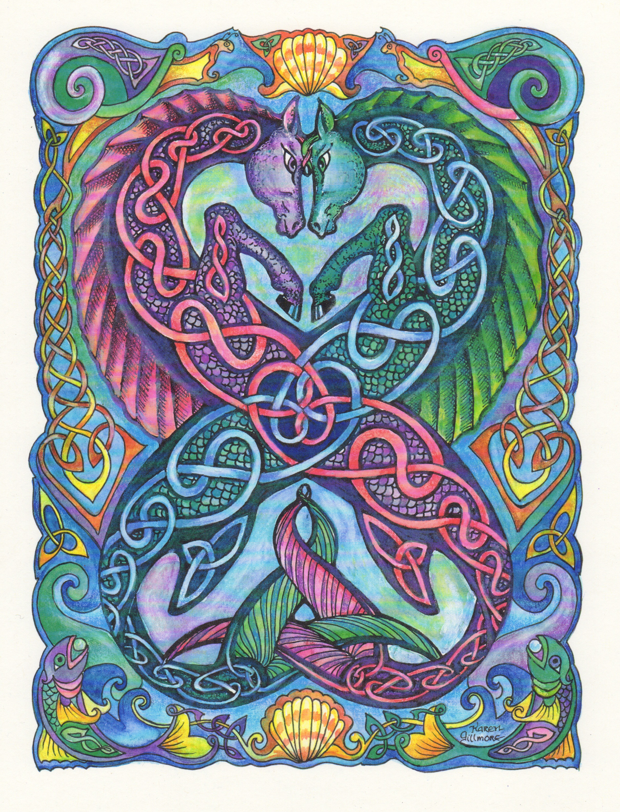 Celtic seahorses colour Published January 22, 2014 at 2419 × 3169 in Evolution of a Design β Celtic Seahorses ← Previous Celtic Seahorses (pen & ink, watercolour, coloured pencil)