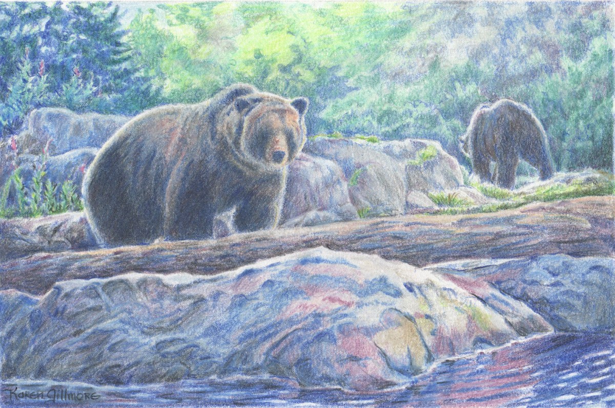 “Bear Hangout” — from a photo I took in Seattle’s Woodland Park Zoo. There were no visible fences, and everyone wanted to know how I’d gotten so close to the bears! Usually I would just smile and look mysterious.