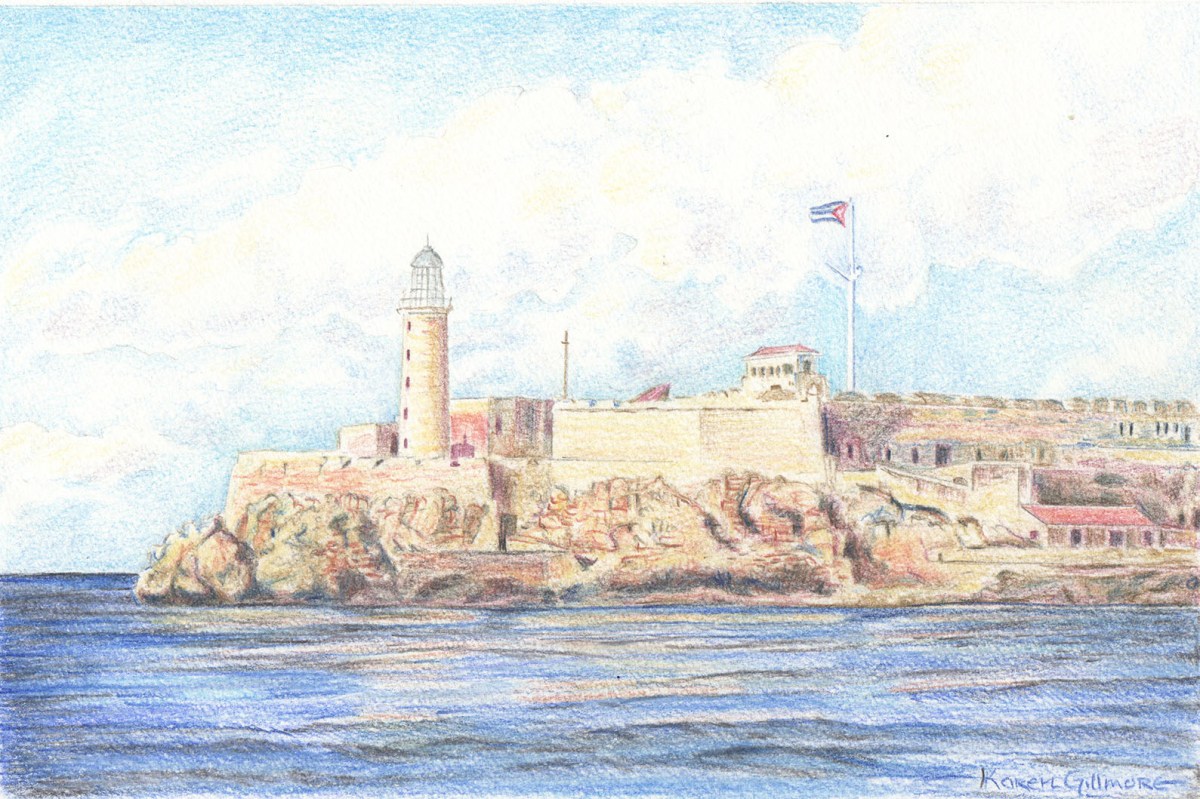 sm El Moro Published February 4, 2014 at 1589 × 1059 in Art Supplies for Control Freaks — Coloured Pencils ← Previous Next → “El Morro” — the famous landmark fort at the mouth of Havana harbour. I got really caught up in the rocks on this one.