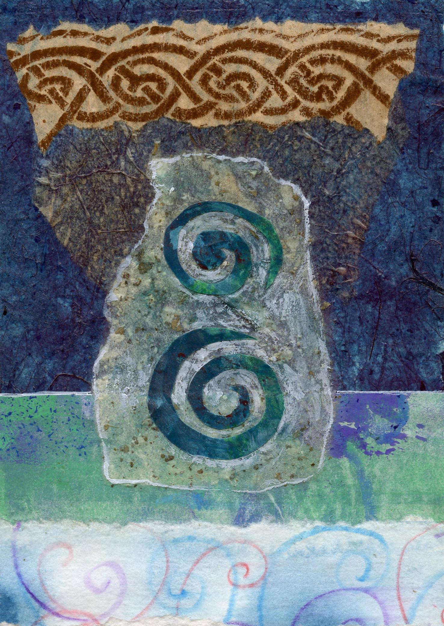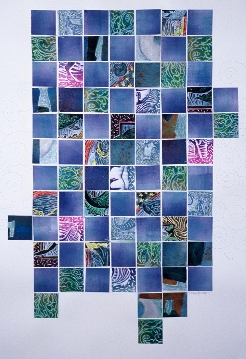 Magic and Mist — I made this from bits of linocut proofs and some paper that I rolled leftover ink onto after a printmaking session.