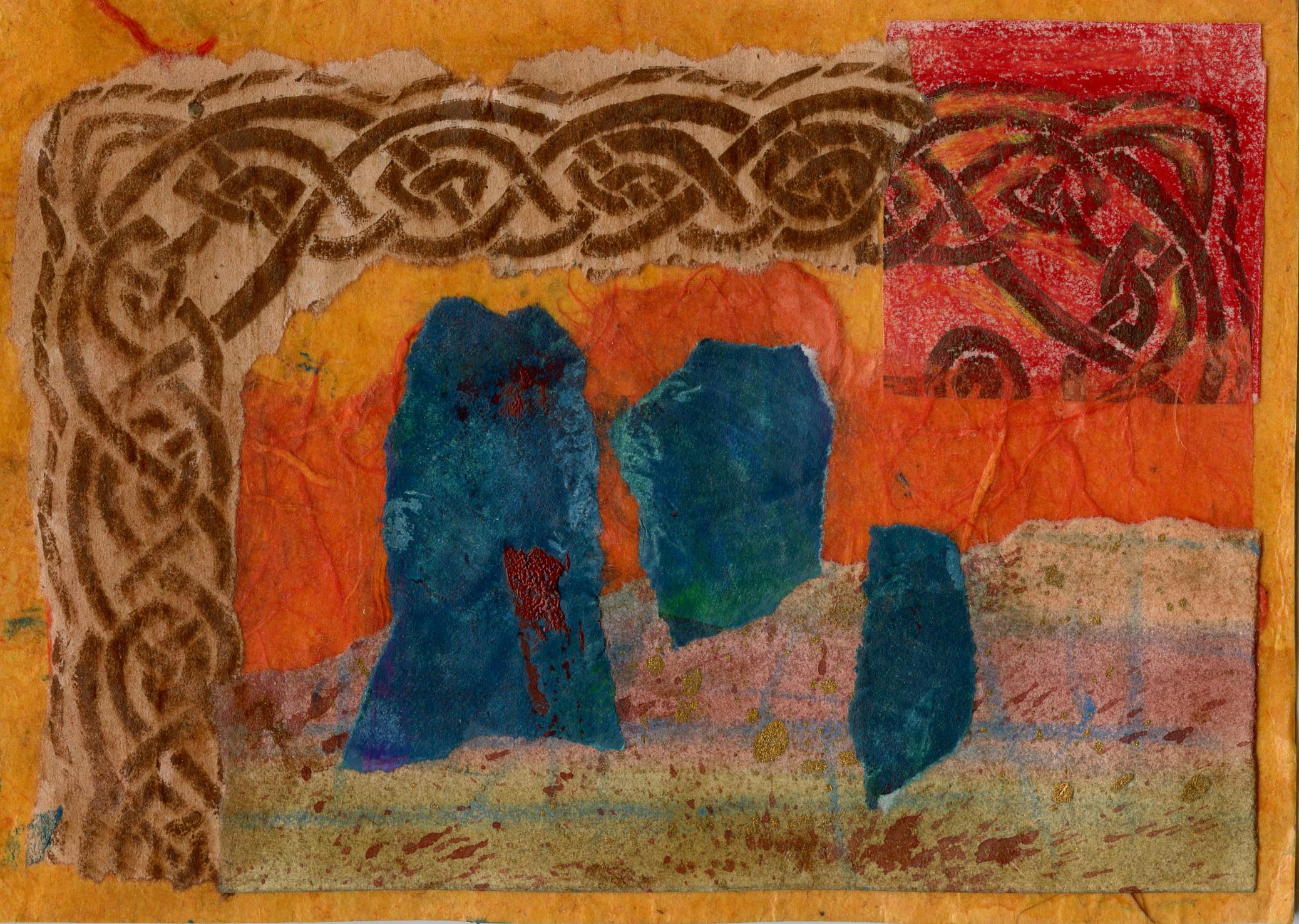 Portals — my own hand decorated papers, some gold tissue paper, and some beautiful Japanese gift-wrap.