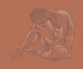 Man Forming a Triangle — coloured pencils on toned paper. Going through my sketches, I was amused to see how many similar poses I’ve drawn over the years — there are only so many ways the human body can fold up, after all. I thought this drawing made an interesting comparison with the previous one.
