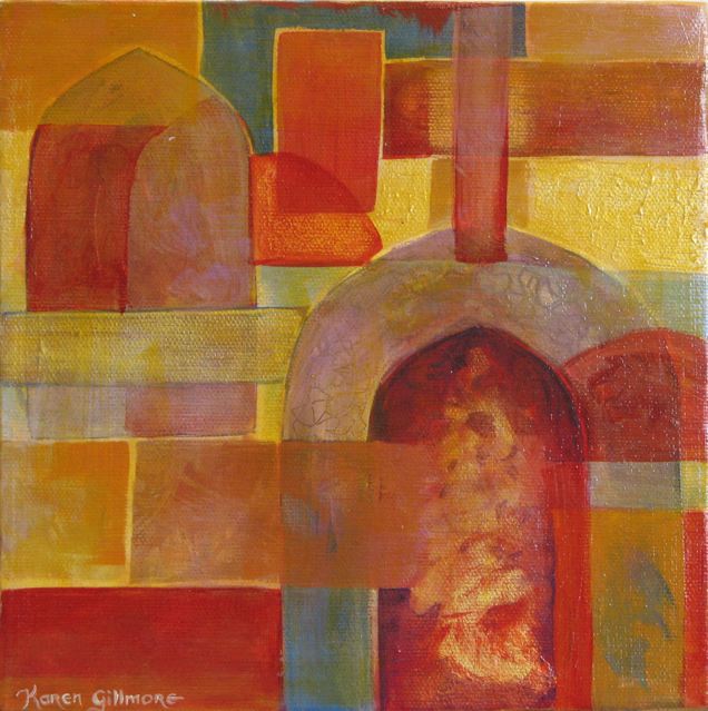 Today I feel like posting something completely different, from my archives. I was scrolling through folders and ran across these little paintings, which I did as a bit of play to try out some new coloured acrylic gessoes (primer) that a friend had brought back from a trip to the Daniel Smith Company in Seattle. I hadn’t tried working on dark backgrounds before, and found that I really liked it. I had five different colours of the gesso: Black, Venetian Red (which became my favourite), Burnt Sienna, Yellow Ochre, and a metallic gold (which took several coats, but made a pretty, shiny gold).