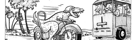 I have finished inking Spam and the Sasquatch! The motorcycle that had me singing the blues yesterday has been drawn properly, more or less, and inked. I present that panel […]
