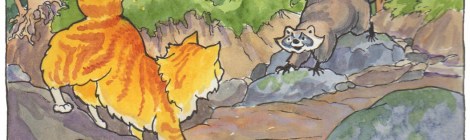 I got to the part in the graphic novel today where Spam-the-Cat meets Renfrew-the-Raccoon. I’ve been having fun with forest colours today, and textures. I’m working very hard, so my […]