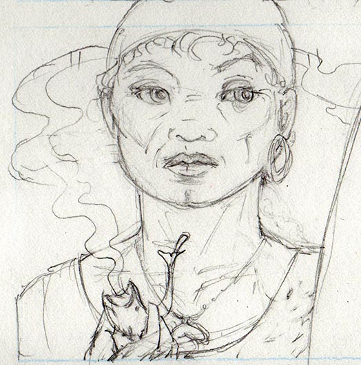 Here are a couple of drawings from the upcoming webcomic — they’re just in pencil stage at this point. Aunt Root is starting to become my favourite character, because she’s so colourful, even though she isn’t the protagonist! I think I’m going to have to give her her own comic later on — I’m sure she’s had many, many adventures in her life.