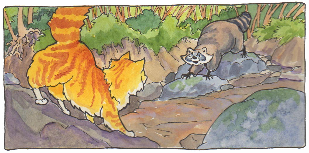 I got to the part in the graphic novel today where Spam-the-Cat meets Renfrew-the-Raccoon. I’ve been having fun with forest colours today, and textures. I’m working very hard, so my blog writing will be minimal this week; on the other hand, I have a plethora of new art to choose from for my daily posts!