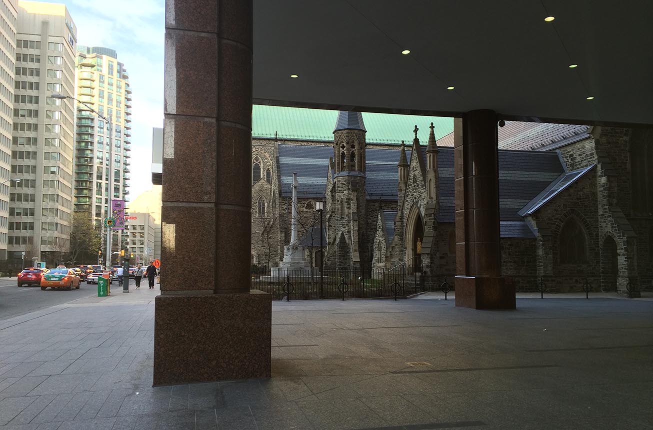 St. Paul’s Anglican, Bloor Street — When I saw this church, I thought I was in England! It looks positively ancient, but it was built in 1913. I love the juxtaposition of this medieval looking architecture with the modern columns in the foreground.