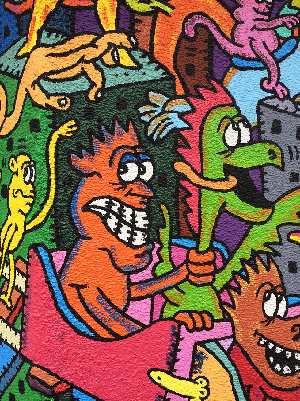 A close-up of the Big Fat Burrito walls — they were done like this all the way around in an intricate, underground comic style — how appropriate is that for my last meal in town?