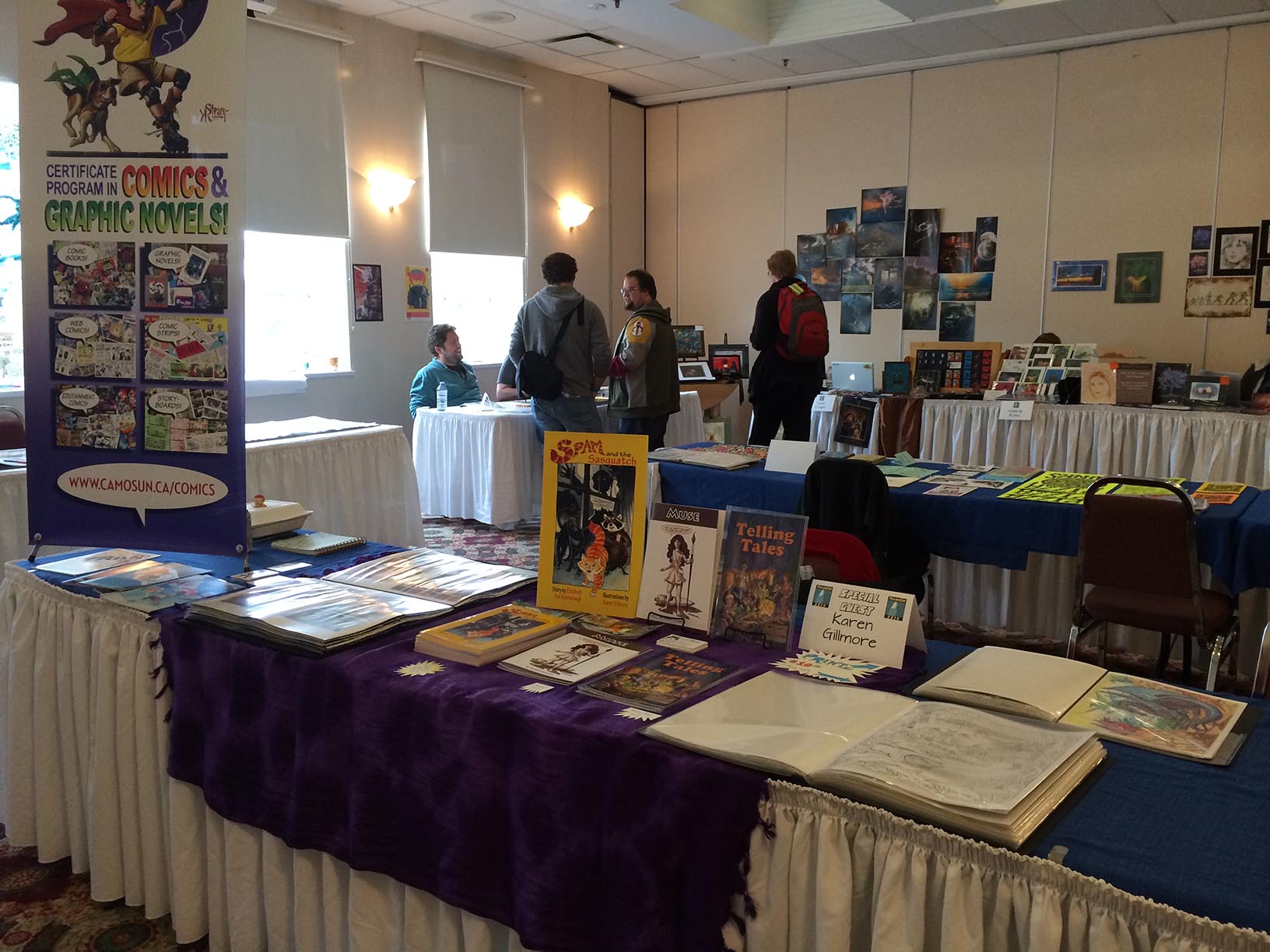 Here’s my table at the convention in Artists’ Alley. Three books, the entire portfolio of the original Spam paintings, and a couple of portfolios full of prints!