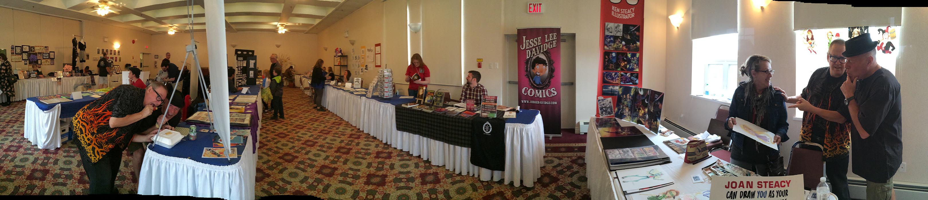 The next two days were filled with meeting a lot of wonderful folks from Whitehorse and many other places, visiting with some artists I already knew, talking comics with both artists and fans, and selling my comics! The pace of the event was refreshingly relaxed, but steady. The organizers were amazing — it was their first convention, organized since February (as I understand it), and it was running more smoothly than some established events I’ve been to! John and the others came by frequently to see if there was anything any of us needed, and the volunteers who spelled us when we needed a break were great. I enjoyed myself immensely, and hope to attend next year as well.