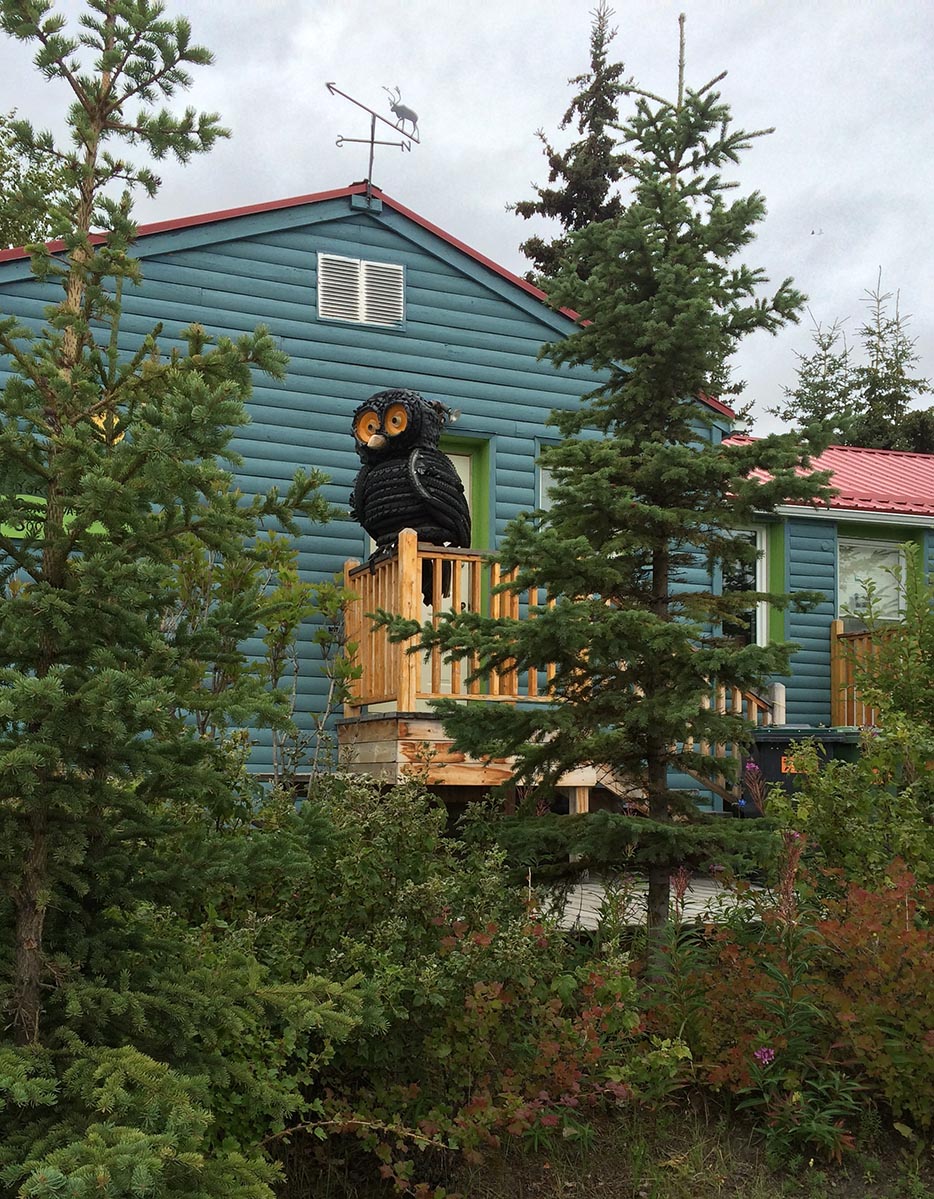 Whitehorse has lots of quirky arty stuff tucked away — we spotted this giant carved owl while on our way to an excellent Mexican restaurant near the hotel.