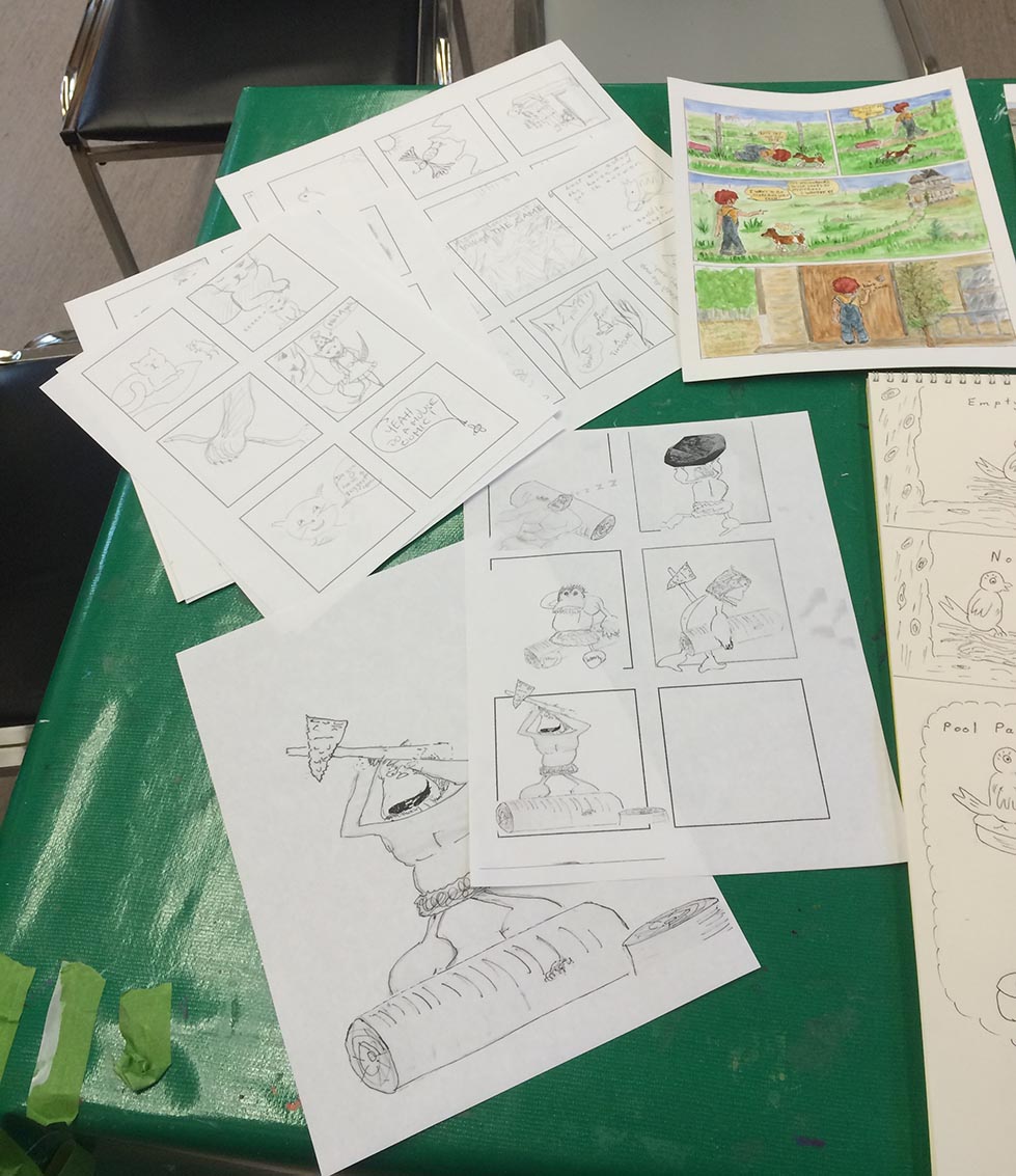Yesterday’s final comics class was a lot of fun — everyone had done a lot of work over the last six weeks, and had some wonderful comics to show for it. I’m working on a big wrap-up post with lots of links, book recommendations, and resources, but it’s going to take me a few days to finish it, because this one will be extra-special! So stay tuned, I’ll have it up by Sunday evening.