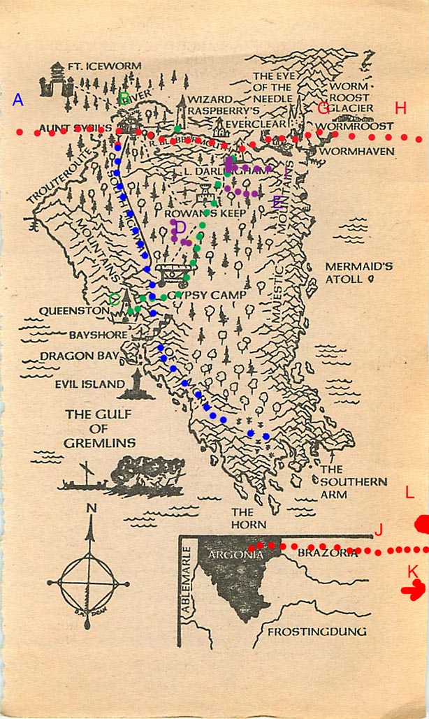 Here’s the map I was working from, scanned from an old copy of the book — the yellowing of the page gives it an almost antique look!