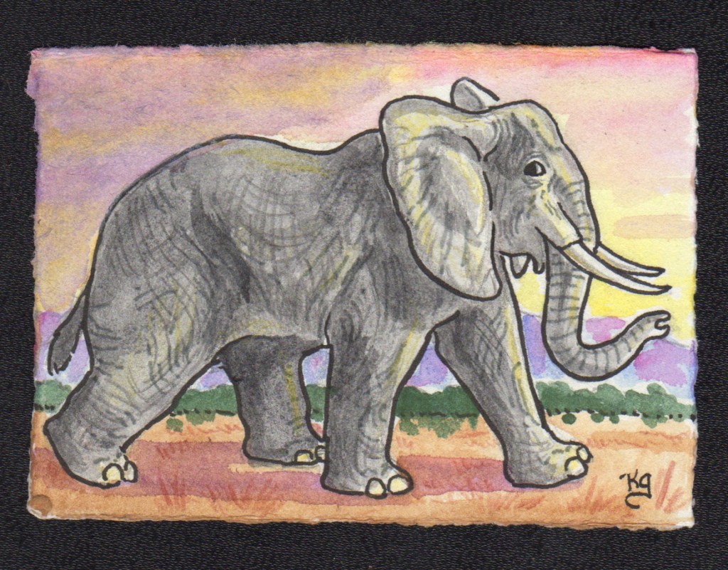 After I started doing comics, I started drawing little sketches on scraps of my watercolour paper, to pass the time when things were slow at conventions. A lot of artists in the comics field do them, in different sizes; I chose 2.5 X 3.5 inches, a common size, both because they were quick and because they fit in the nifty little binder sleeves that are made for trading cards. I sold them for ten bucks, mostly to people who collected such things.