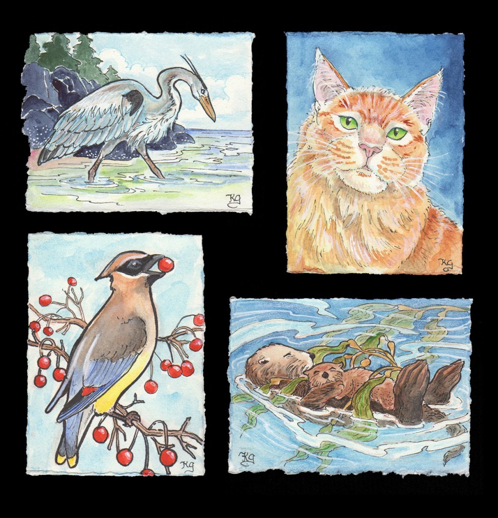 But one year for the Zooly Art Challenge (an animal-drawing challenge that happens in July), I decided to do this size for the whole month of prompts. I originally intended that they would just be quick sketches, but I just couldn’t help myself — they got more and more detailed! I’ve continued doing them on and off over time, and they have evolved: they’re no longer just sketches of my comics characters, but what I consider proper miniature paintings.