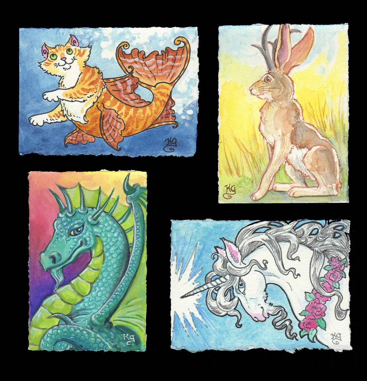 At one point I got tired of drawing real animals and did some mythical ones, just for fun. I’d like to do more of these, maybe have a whole line of them. I’d also like to try doing some teeny-tiny landscapes or florals.