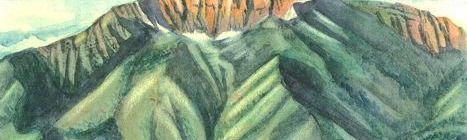 This demo was to show lifting paint out of a blended wash (and add some more for shadows) to make clouds, and how to make aerial perspective by making distant things lighter and bluer. I wasn't sure what the landscape was going to be, it sort of evolved as I went along.